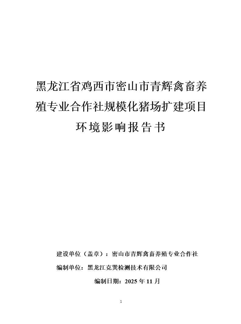 黑龍江省雞西市密山市青輝禽畜養(yǎng)殖專業(yè)合作社規(guī)?;i場擴(kuò)建項(xiàng)目環(huán)境影響報告書